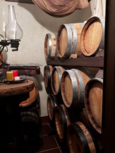 In seguito a un’attenta cernita delle migliori uve, le stesse sono state pressate al torchio e il mosto così ottenuto è stato lasciato sedimentare per qualche giorno in damigiana per rimuovere le fecce più grossolane. Tale mosto è stato, poi, trasferito in caratelli ove ha fermentato a lungo rimanendo al loro interno per oltre due anni. Tali caratelli, che hanno una capienza da pochi litri fino ad un massimo di cinquanta, sono per la maggior parte di rovere – oltre ad alcuni di castagno, ciliegio e gelso – e sono conservati in un piccolo locale a tetto. Un ruolo fondamentale nella produzione di questo passito è svolto dalla “madre”, un composto semi-solido formato dai lieviti presenti naturalmente durante la fermentazione e che, al termine di questa, si sedimentano in stato di quiescenza sul fondo dei caratelli, per riattivarsi con l’inserimento di nuovi mosti nelle annate successive.