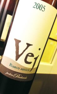 Ottenuto dalla vinificazione in rosso di uve Malvasia di Candia Aromatica, il Vej Bianco Antico 2005 denota la particolarità del proprio carattere a partire dall’esame visivo: il suo color ambra scuro, arricchito da lievi e calde pennellate rame, sembra volerci condurre alle radici del vino, in tempi lontani quando l’uva – più che l’uomo – decideva la qualità del vino che ne sarebbe derivato. Attenzione, però, a non lasciarsi trarre in inganno pensando a un prodotto ottenuto così, quasi per caso. Questo vino nasce, al contrario, da un percorso attentamente pensato, dove ogni scelta, ogni giorno di macerazione, ogni mese trascorso nelle grandi botti di rovere rispondono alla precisa consapevolezza che la natura, pur in grado di fornirci nutrimento e gioia, deve essere guidata con rispetto e amore verso il risultato voluto.