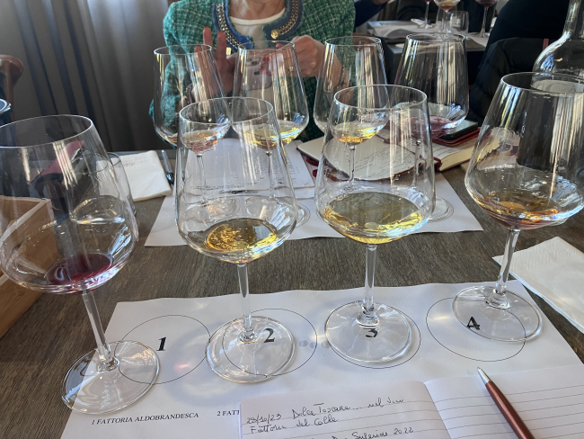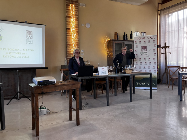 Al fine di iniziare tale virtuoso percorso di rilancio, il giorno 28 ottobre 2023 presso la Fattoria del Colle di Donatella Cinelli Colombini è stato organizzato, in collaborazione con le Donne del Vino della Toscana, l’evento “Dolce Toscana nel Vino”, un’occasione che ha unito un’affascinante degustazione di Vin Santo e vini passiti con un dibattito volto ad evidenziare i principali problemi di questo settore di mercato e di iniziare a porre le basi di un percorso di rilancio mediante adeguate iniziative volte a tutelare la qualità dei prodotti e a rilanciarne l’immagine sui mercati italiano ed estero.