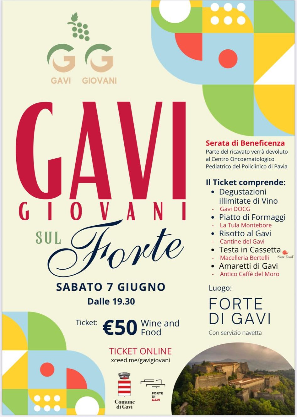 Si è svolta il 7 giugno la serata benefica “Gavi Giovani sul Forte 2025” durante la quale la neonata Associazione Gavi Giovani si è presentata al pubblico e alla stampa; l’incasso è stato interamente devoluto al Centro Oncoematologico Infantile di Pavia.