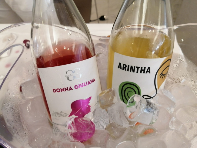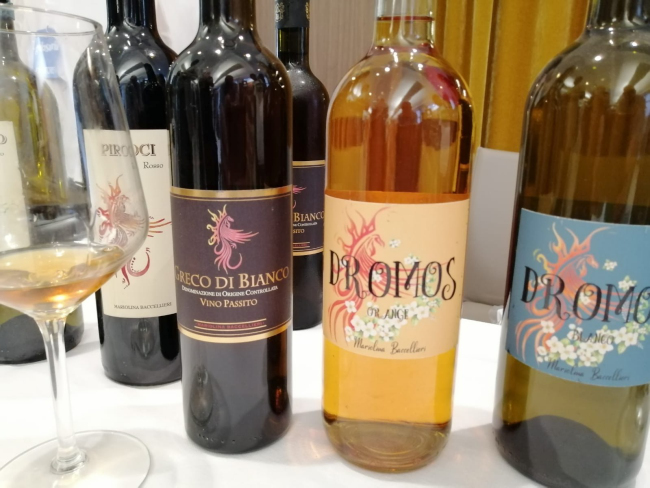 Il loro bianco “Arintha” (dal nome greco della città di Rende), composto da greco bianco al 90% e chardonnay al 10%, si presenta di un giallo paglierino scarico; le uve provengono da vigneti a 520 metri s.l.m. Il naso è davvero ricco e ammaliante con sentori che vanno dal floreale, ginestra e biancospino, alla frutta esotica e agrumata, con un affascinante sottofondo minerale; in bocca, il vino conferma le iniziali impressioni e fa di una vivida freschezza, di una piacevole salinità e di una equilibrata alcolicità un grande valore aggiunto. Sorso davvero invitante, un attivatore di atmosfere marine, per citare le parole di Giraldi.