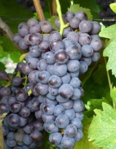La foglia adulta è di media grandezza (talvolta medio-grande), di forma pentagonale con tre o cinque lobi. Il grappolo a maturità è di grandezza media o medio-grande, piramidale, talora allungato, spesso con ali molto sviluppate, generalmente produce grappoli compatti o molto compatti. Gli acini, di dimensioni medio – piccole, hanno buccia molto pruinosa di colore da nero violetto a rosso violetto, sovente non uniformemente distribuito; i vinaccioli sono numerosi. La maturazione dell’uva avviene in epoca media o medio-tardiva, ovvero tra la fine settembre e la prima decade di ottobre. Ha pochi antociani e, pertanto, in autunno le foglie non diventano rosse bensì gialle. Nulla è, per ora, noto sulle sue origini e parentele.