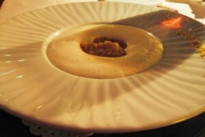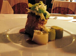 Non solo stretta tradizione è la marca della cucina de La Clusaz. Sempre nel rispetto di un’attenta e meticolosa cura per le materie prime e per la valorizzazione dei prodotti del territorio, il menù stagionale – accanto a quello di caccia, che in occasione della nostra visita declinava diverse interpretazioni e preparazioni della carne di cervo, e a quello dedicato al foie-gras – offre preparazioni originali e creative, come il Fiore d’uovo, salsa scalogno e spumante, sbrisolona salata, o gli Gnocchetti di farina di castagne come a Gressoney accompagnati dalla crema di zucca.