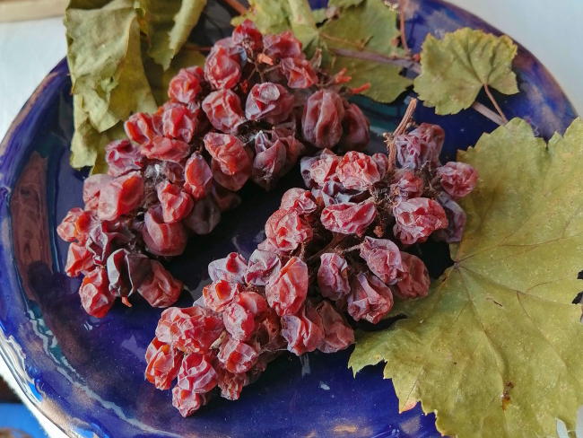 Sarà proprio a Caluso, in provincia di Torino, che inizia la mia visita presso l’Azienda Agricola di Ilaria Salvetti; mi accoglie il padre, che in passato ha iniziato a dedicarsi a questo vitigno autoctono soprattutto per autoconsumo. La Cantina, posizionata in centro paese, nasce nel 2012, associata FIVI (Federazione Italiana Vignaioli Indipendenti) e comprende circa 3 ettari vitati con certificazione biologica, coltivati a erbaluce e riesling renano. Il signor Carlo lascia il posto alla figlia Ilaria che mi fa accomodare nella piccola sala dedicata alla degustazione, non prima d’avermi illustrato la filosofia produttiva, le caratteristiche delle uve e gli aspetti legati alla loro vinificazione; nel frattempo, la mia vista viene attirata da un piattino contenente due grappoli disidratati color vinaccia e leggermente appassiti. Il racconto di Ilaria parte proprio da uno degli aspetti più affascinanti dell’erbaluce: il grappolo spargolo presenta acini dalla buccia coriacea e spessa, che ben si adatta all’attacco della Botrytis cinerea, un fungo aerobico, che in condizioni di una corretta umidità e di escursioni termiche particolari, provoca la formazione della “muffa nobile”.