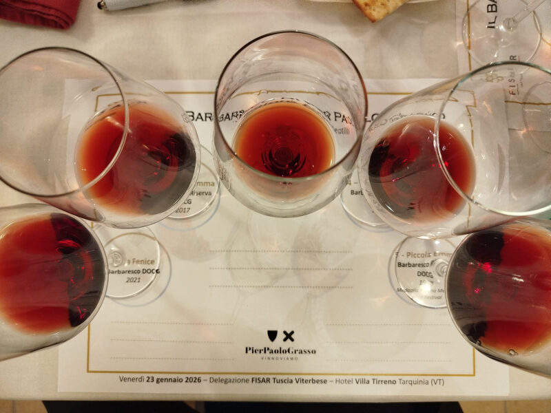 La degustazione di seguito narrata è stata organizzata presso l’Hotel Villa Tirreno di Tarquinia (VT) dalla Delegazione Autonoma FISAR Tuscia Viterbese la sera del 23 gennaio 2026. Il mio ringraziamento – per il grande piacere di aver condotto una serata di tale fascino – va alla Delegazione tutta per l’eccellente lavoro svolto e a Pier Paolo Grasso e Sara Morra perché, con il loro lavoro, ci hanno regalato delle ore di pura emozione.