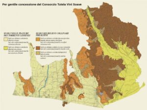 L’area della Doc Soave può essere suddivisa, dal punto di vista geo-pedologico, in quattro fondamentali unità territoriali che danno vita a vini dai differenti profili sensoriali.